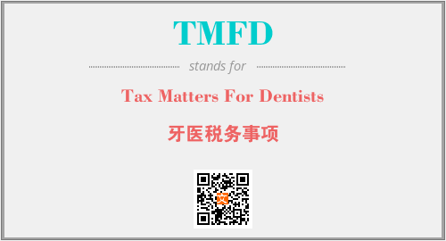 英文缩略词“TMFD”经常作为“Tax Matters For Dentists”的英文缩写来使用,中文表示:“牙医税务事项”。本文将详细介绍英文缩写词TMFD所代表英文单词,其对应的中文拼音、详细解释以及在英语中的流行度。此外,还有关于缩略词TMFD的分类、应用领域及相关应用示例等。