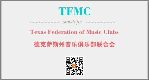 上述内容是“Texas Federation of Music Clubs”作为“TFMC”的缩写,解释为“德克萨斯州音乐俱乐部联合会”时的信息,以及英文缩略词TFMC所代表的英文单词,其对应的中文拼音、详细解释以及在英文中的流行度和相关分类、应用领域及应用示例等。