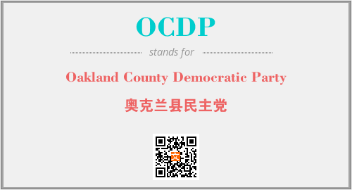 上述内容是“Oakland County Democratic Party”作为“OCDP”的缩写,解释为“奥克兰县民主党”时的信息,以及英文缩略词OCDP所代表的英文单词,其对应的中文拼音、详细解释以及在英文中的流行度和相关分类、应用领域及应用示例等。