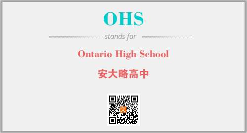 上述内容是“Ontario High School”作为“OHS”的缩写,解释为“安大略高中”时的信息,以及英文缩略词OHS所代表的英文单词,其对应的中文拼音、详细解释以及在英文中的流行度和相关分类、应用领域及应用示例等。