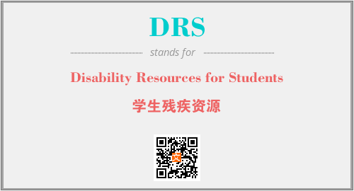 英文缩略词“DRS”经常作为“Disability Resources for Students”的英文缩写来使用,中文表示:“学生残疾资源”。本文将详细介绍英文缩写词DRS所代表英文单词,其对应的中文拼音、详细解释以及在英语中的流行度。此外,还有关于缩略词DRS的分类、应用领域及相关应用示例等。