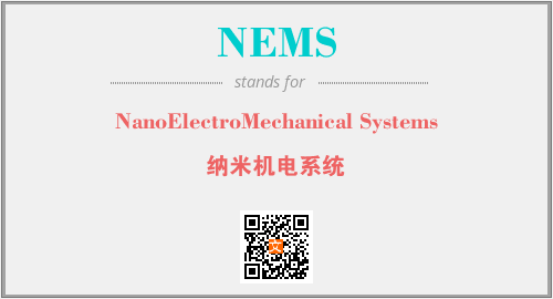 上述内容是“NanoElectroMechanical Systems”作为“NEMS”的缩写,解释为“纳米机电系统”时的信息,以及英文缩略词NEMS所代表的英文单词,其对应的中文拼音、详细解释以及在英文中的流行度和相关分类、应用领域及应用示例等。