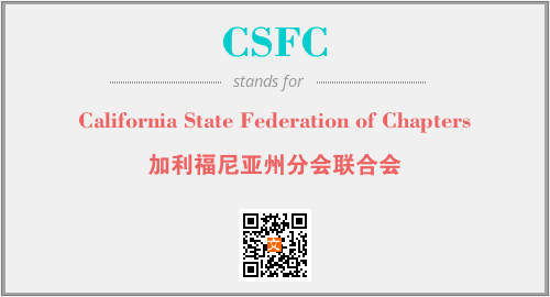 英文缩略词“CSFC”经常作为“California State Federation of Chapters”的英文缩写来使用,中文表示:“加利福尼亚州分会联合会”。本文将详细介绍英文缩写词CSFC所代表英文单词,其对应的中文拼音、详细解释以及在英语中的流行度。此外,还有关于缩略词CSFC的分类、应用领域及相关应用示例等。