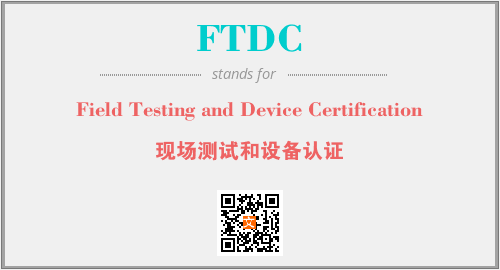上述内容是“Field Testing and Device Certification”作为“FTDC”的缩写,解释为“现场测试和设备认证”时的信息,以及英文缩略词FTDC所代表的英文单词,其对应的中文拼音、详细解释以及在英文中的流行度和相关分类、应用领域及应用示例等。