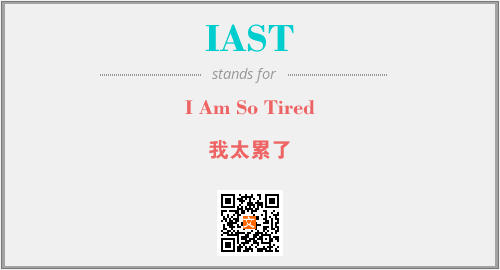 英文缩略词“IAST”经常作为“I Am So Tired”的英文缩写来使用,中文表示:“我太累了”。本文将详细介绍英文缩写词IAST所代表英文单词,其对应的中文拼音、详细解释以及在英语中的流行度。此外,还有关于缩略词IAST的分类、应用领域及相关应用示例等。