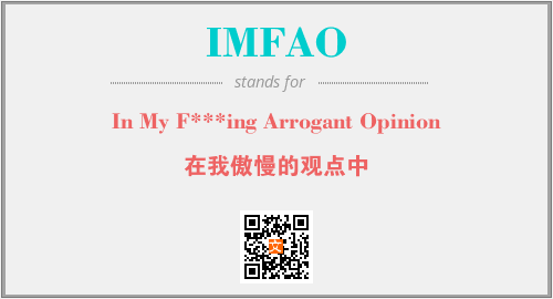 以上为In My F***ing Arrogant Opinion英文缩略词IMFAO的中文解释,以及该英文缩写在英语的流行度、分类和应用领域方面的信息。