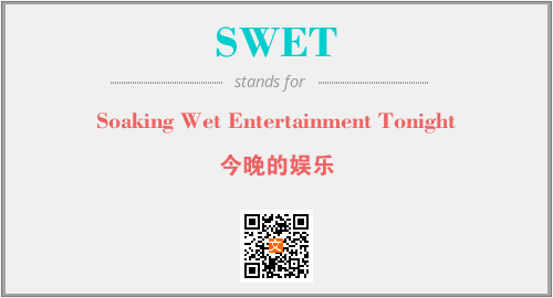 英文缩略词“SWET”经常作为“Soaking Wet Entertainment Tonight”的英文缩写来使用,中文表示:“今晚的娱乐”。本文将详细介绍英文缩写词SWET所代表英文单词,其对应的中文拼音、详细解释以及在英语中的流行度。此外,还有关于缩略词SWET的分类、应用领域及相关应用示例等。