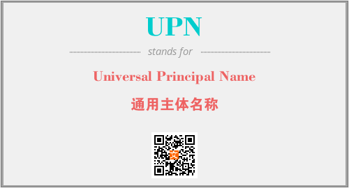 英文缩略词“UPN”经常作为“Universal Principal Name”的英文缩写来使用,中文表示:“通用主体名称”。本文将详细介绍英文缩写词UPN所代表英文单词,其对应的中文拼音、详细解释以及在英语中的流行度。此外,还有关于缩略词UPN的分类、应用领域及相关应用示例等。