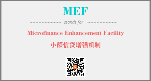 英文缩略词“MEF”经常作为“Microfinance Enhancement Facility”的英文缩写来使用,中文表示:“小额信贷增强机制”。本文将详细介绍英文缩写词MEF所代表英文单词,其对应的中文拼音、详细解释以及在英语中的流行度。此外,还有关于缩略词MEF的分类、应用领域及相关应用示例等。
