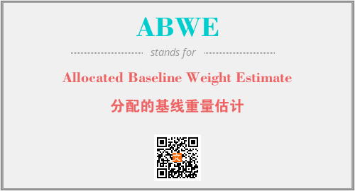 上述内容是“Allocated Baseline Weight Estimate”作为“ABWE”的缩写,解释为“分配的基线重量估计”时的信息,以及英文缩略词ABWE所代表的英文单词,其对应的中文拼音、详细解释以及在英文中的流行度和相关分类、应用领域及应用示例等。