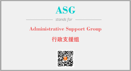 英文缩略词“ASG”经常作为“Administrative Support Group”的英文缩写来使用,中文表示:“行政支援组”。本文将详细介绍英文缩写词ASG所代表英文单词,其对应的中文拼音、详细解释以及在英语中的流行度。此外,还有关于缩略词ASG的分类、应用领域及相关应用示例等。