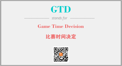 上述内容是“Game Time Decision”作为“GTD”的缩写,解释为“比赛时间决定”时的信息,以及英文缩略词GTD所代表的英文单词,其对应的中文拼音、详细解释以及在英文中的流行度和相关分类、应用领域及应用示例等。