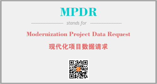英文缩略词“MPDR”经常作为“Modernization Project Data Request”的英文缩写来使用,中文表示:“现代化项目数据请求”。本文将详细介绍英文缩写词MPDR所代表英文单词,其对应的中文拼音、详细解释以及在英语中的流行度。此外,还有关于缩略词MPDR的分类、应用领域及相关应用示例等。