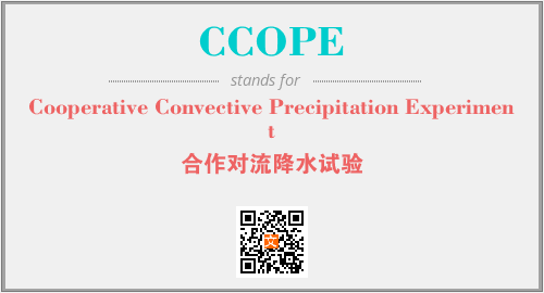 上述内容是“Cooperative Convective Precipitation Experiment”作为“CCOPE”的缩写,解释为“合作对流降水试验”时的信息,以及英文缩略词CCOPE所代表的英文单词,其对应的中文拼音、详细解释以及在英文中的流行度和相关分类、应用领域及应用示例等。