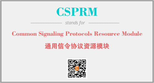 英文缩略词“CSPRM”经常作为“Common Signaling Protocols Resource Module”的英文缩写来使用,中文表示:“通用信令协议资源模块”。本文将详细介绍英文缩写词CSPRM所代表英文单词,其对应的中文拼音、详细解释以及在英语中的流行度。此外,还有关于缩略词CSPRM的分类、应用领域及相关应用示例等。
