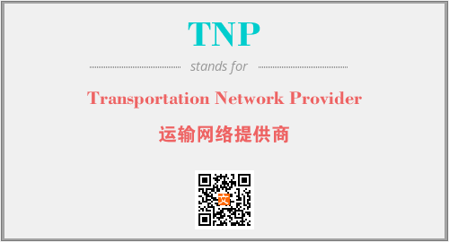 上述内容是“Transportation Network Provider”作为“TNP”的缩写,解释为“运输网络提供商”时的信息,以及英文缩略词TNP所代表的英文单词,其对应的中文拼音、详细解释以及在英文中的流行度和相关分类、应用领域及应用示例等。