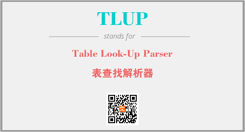 上述内容是“Table Look-Up Parser”作为“TLUP”的缩写,解释为“表查找解析器”时的信息,以及英文缩略词TLUP所代表的英文单词,其对应的中文拼音、详细解释以及在英文中的流行度和相关分类、应用领域及应用示例等。