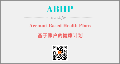 英文缩略词“ABHP”经常作为“Account Based Health Plans”的英文缩写来使用,中文表示:“基于账户的健康计划”。本文将详细介绍英文缩写词ABHP所代表英文单词,其对应的中文拼音、详细解释以及在英语中的流行度。此外,还有关于缩略词ABHP的分类、应用领域及相关应用示例等。