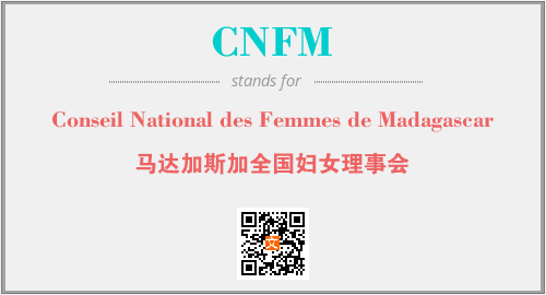 上述内容是“Conseil National des Femmes de Madagascar”作为“CNFM”的缩写,解释为“马达加斯加全国妇女理事会”时的信息,以及英文缩略词CNFM所代表的英文单词,其对应的中文拼音、详细解释以及在英文中的流行度和相关分类、应用领域及应用示例等。