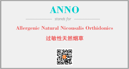 上述内容是“Allergenic Natural Nicousalis Orthidonics”作为“ANNO”的缩写,解释为“过敏性天然烟草”时的信息,以及英文缩略词ANNO所代表的英文单词,其对应的中文拼音、详细解释以及在英文中的流行度和相关分类、应用领域及应用示例等。