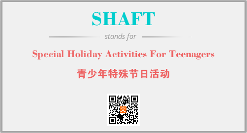 以上为Special Holiday Activities For Teenagers英文缩略词SHAFT的中文解释,以及该英文缩写在英语的流行度、分类和应用领域方面的信息。
