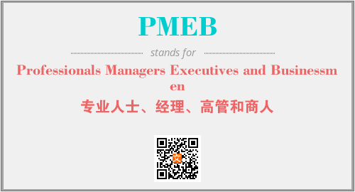 上述内容是“Professionals Managers Executives and Businessmen”作为“PMEB”的缩写,解释为“专业人士、经理、高管和商人”时的信息,以及英文缩略词PMEB所代表的英文单词,其对应的中文拼音、详细解释以及在英文中的流行度和相关分类、应用领域及应用示例等。