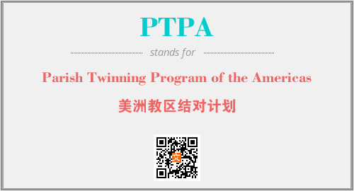 上述内容是“Parish Twinning Program of the Americas”作为“PTPA”的缩写,解释为“美洲教区结对计划”时的信息,以及英文缩略词PTPA所代表的英文单词,其对应的中文拼音、详细解释以及在英文中的流行度和相关分类、应用领域及应用示例等。