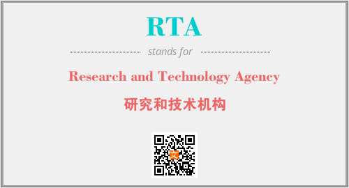 以上为Research and Technology Agency英文缩略词RTA的中文解释,以及该英文缩写在英语的流行度、分类和应用领域方面的信息。