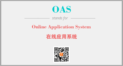 上述内容是“Online Application System”作为“OAS”的缩写,解释为“在线应用系统”时的信息,以及英文缩略词OAS所代表的英文单词,其对应的中文拼音、详细解释以及在英文中的流行度和相关分类、应用领域及应用示例等。