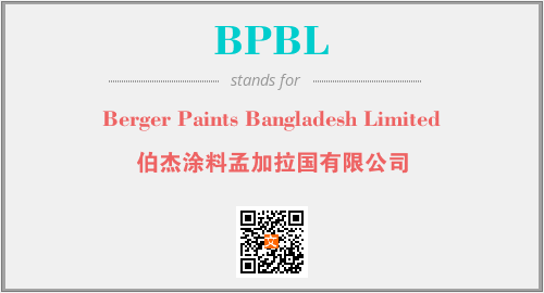上述内容是“Berger Paints Bangladesh Limited”作为“BPBL”的缩写,解释为“伯杰涂料孟加拉国有限公司”时的信息,以及英文缩略词BPBL所代表的英文单词,其对应的中文拼音、详细解释以及在英文中的流行度和相关分类、应用领域及应用示例等。