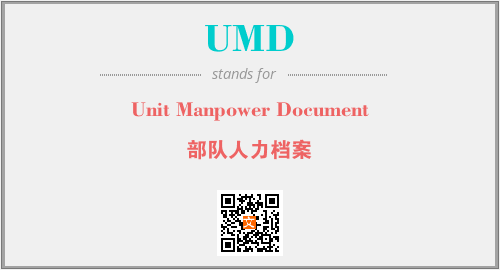 英文缩略词“UMD”经常作为“Unit Manpower Document”的英文缩写来使用,中文表示:“部队人力档案”。本文将详细介绍英文缩写词UMD所代表英文单词,其对应的中文拼音、详细解释以及在英语中的流行度。此外,还有关于缩略词UMD的分类、应用领域及相关应用示例等。