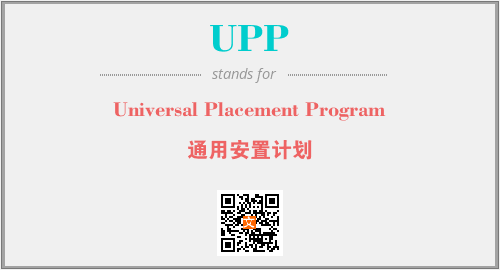 上述内容是“Universal Placement Program”作为“UPP”的缩写,解释为“通用安置计划”时的信息,以及英文缩略词UPP所代表的英文单词,其对应的中文拼音、详细解释以及在英文中的流行度和相关分类、应用领域及应用示例等。
