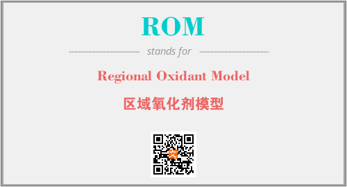 上述内容是“Regional Oxidant Model”作为“ROM”的缩写,解释为“区域氧化剂模型”时的信息,以及英文缩略词ROM所代表的英文单词,其对应的中文拼音、详细解释以及在英文中的流行度和相关分类、应用领域及应用示例等。