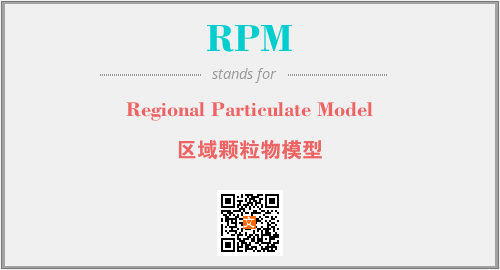 上述内容是“Regional Particulate Model”作为“RPM”的缩写,解释为“区域颗粒物模型”时的信息,以及英文缩略词RPM所代表的英文单词,其对应的中文拼音、详细解释以及在英文中的流行度和相关分类、应用领域及应用示例等。