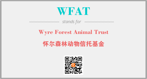 上述内容是“Wyre Forest Animal Trust”作为“WFAT”的缩写,解释为“怀尔森林动物信托基金”时的信息,以及英文缩略词WFAT所代表的英文单词,其对应的中文拼音、详细解释以及在英文中的流行度和相关分类、应用领域及应用示例等。