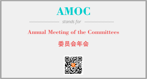 英文缩略词“AMOC”经常作为“Annual Meeting of the Committees”的英文缩写来使用,中文表示:“委员会年会”。本文将详细介绍英文缩写词AMOC所代表英文单词,其对应的中文拼音、详细解释以及在英语中的流行度。此外,还有关于缩略词AMOC的分类、应用领域及相关应用示例等。