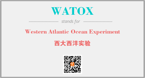 上述内容是“Western Atlantic Ocean Experiment”作为“WATOX”的缩写,解释为“西大西洋实验”时的信息,以及英文缩略词WATOX所代表的英文单词,其对应的中文拼音、详细解释以及在英文中的流行度和相关分类、应用领域及应用示例等。