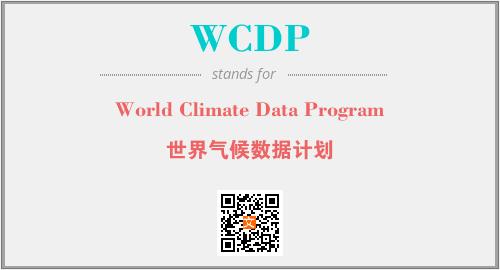 英文缩略词“WCDP”经常作为“World Climate Data Program”的英文缩写来使用,中文表示:“世界气候数据计划”。本文将详细介绍英文缩写词WCDP所代表英文单词,其对应的中文拼音、详细解释以及在英语中的流行度。此外,还有关于缩略词WCDP的分类、应用领域及相关应用示例等。