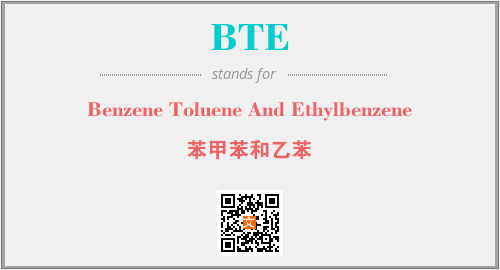 上述内容是“Benzene Toluene And Ethylbenzene”作为“BTE”的缩写,解释为“苯甲苯和乙苯”时的信息,以及英文缩略词BTE所代表的英文单词,其对应的中文拼音、详细解释以及在英文中的流行度和相关分类、应用领域及应用示例等。
