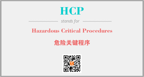 英文缩略词“HCP”经常作为“Hazardous Critical Procedures”的英文缩写来使用,中文表示:“危险关键程序”。本文将详细介绍英文缩写词HCP所代表英文单词,其对应的中文拼音、详细解释以及在英语中的流行度。此外,还有关于缩略词HCP的分类、应用领域及相关应用示例等。