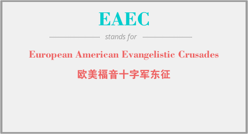 以上为European American Evangelistic Crusades英文缩略词EAEC的中文解释,以及该英文缩写在英语的流行度、分类和应用领域方面的信息。