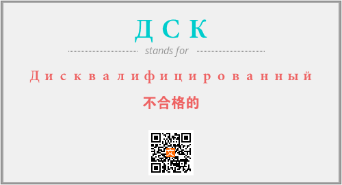 英文缩略词“ДСК”经常作为“Дисквалифицированный”的英文缩写来使用,中文表示:“不合格的”。本文将详细介绍英文缩写词ДСК所代表英文单词,其对应的中文拼音、详细解释以及在英语中的流行度。此外,还有关于缩略词ДСК的分类、应用领域及相关应用示例等。