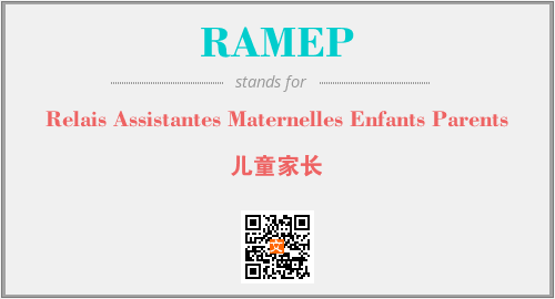 上述内容是“Relais Assistantes Maternelles Enfants Parents”作为“RAMEP”的缩写,解释为“儿童家长”时的信息,以及英文缩略词RAMEP所代表的英文单词,其对应的中文拼音、详细解释以及在英文中的流行度和相关分类、应用领域及应用示例等。
