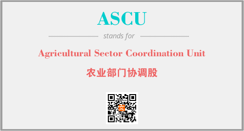 上述内容是“Agricultural Sector Coordination Unit”作为“ASCU”的缩写,解释为“农业部门协调股”时的信息,以及英文缩略词ASCU所代表的英文单词,其对应的中文拼音、详细解释以及在英文中的流行度和相关分类、应用领域及应用示例等。
