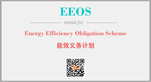 上述内容是“Energy Efficiency Obligation Scheme”作为“EEOS”的缩写,解释为“能效义务计划”时的信息,以及英文缩略词EEOS所代表的英文单词,其对应的中文拼音、详细解释以及在英文中的流行度和相关分类、应用领域及应用示例等。