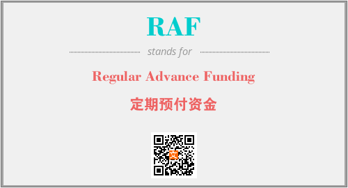 英文缩略词“RAF”经常作为“Regular Advance Funding”的英文缩写来使用,中文表示:“定期预付资金”。本文将详细介绍英文缩写词RAF所代表英文单词,其对应的中文拼音、详细解释以及在英语中的流行度。此外,还有关于缩略词RAF的分类、应用领域及相关应用示例等。