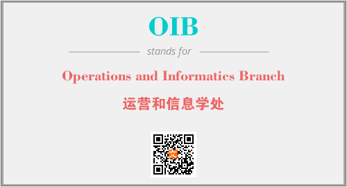 上述内容是“Operations and Informatics Branch”作为“OIB”的缩写,解释为“运营和信息学处”时的信息,以及英文缩略词OIB所代表的英文单词,其对应的中文拼音、详细解释以及在英文中的流行度和相关分类、应用领域及应用示例等。