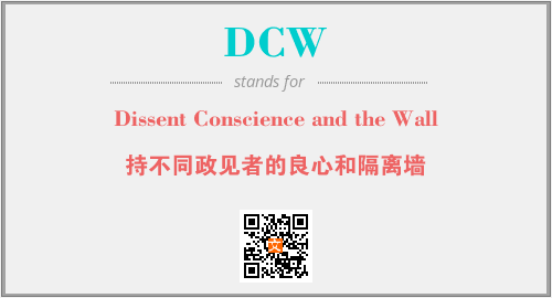 上述内容是“Dissent Conscience and the Wall”作为“DCW”的缩写,解释为“持不同政见者的良心和隔离墙”时的信息,以及英文缩略词DCW所代表的英文单词,其对应的中文拼音、详细解释以及在英文中的流行度和相关分类、应用领域及应用示例等。