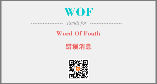 上述内容是“Word Of Fouth”作为“WOF”的缩写,解释为“错误消息”时的信息,以及英文缩略词WOF所代表的英文单词,其对应的中文拼音、详细解释以及在英文中的流行度和相关分类、应用领域及应用示例等。