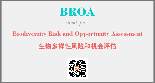 上述内容是“Biodiversity Risk and Opportunity Assessment”作为“BROA”的缩写,解释为“生物多样性风险和机会评估”时的信息,以及英文缩略词BROA所代表的英文单词,其对应的中文拼音、详细解释以及在英文中的流行度和相关分类、应用领域及应用示例等。
